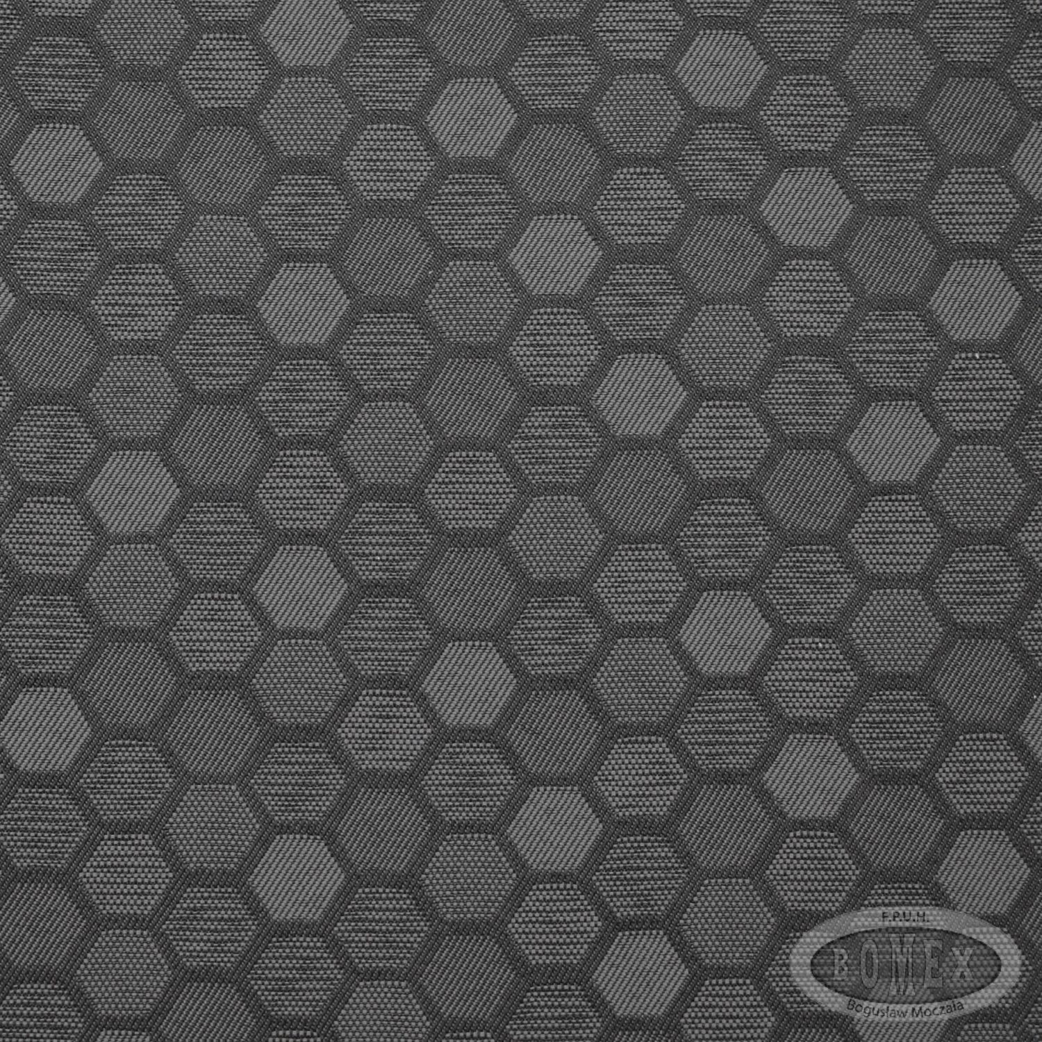 Wysokiej jakości tkanina samochodowa o ciekawym wzorze w heksagony. Przeznaczona do tapicerki siedzeń, boczków drzwi oraz elementów wykończeniowych wnętrz auta. Wykonana z trwałych włókien syntetycznych, odpornych na intensywne użytkowanie i ścieranie.
